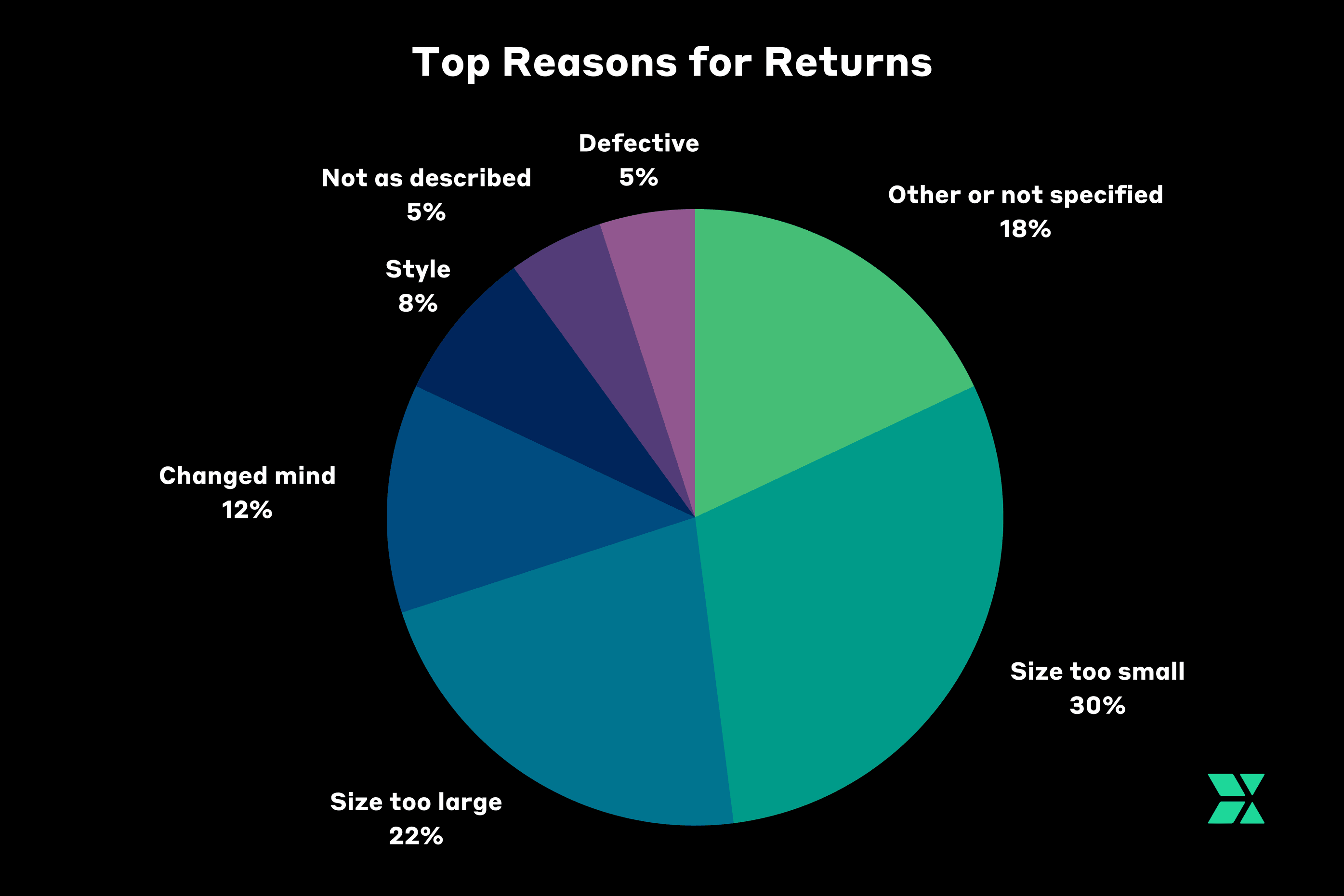 Consumer preference-based returns (for example, size and fit) account for 72% of all returns in fashion product categories [as detailed in the graph below]. Non-preference-based reasons (if the product is defective or not as described) account for 10% in total.